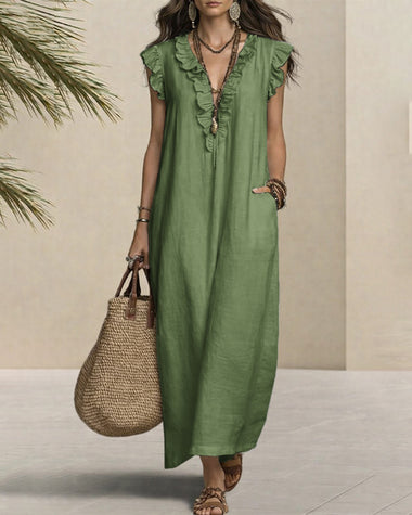 Zeagoo Casual Linen Blend Ruffle Details Sleeveless Maxi Dress for Women Casual Beach Vacation Summer 2026