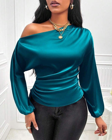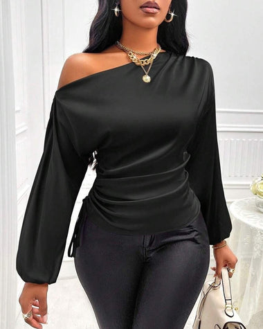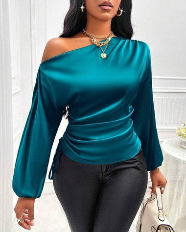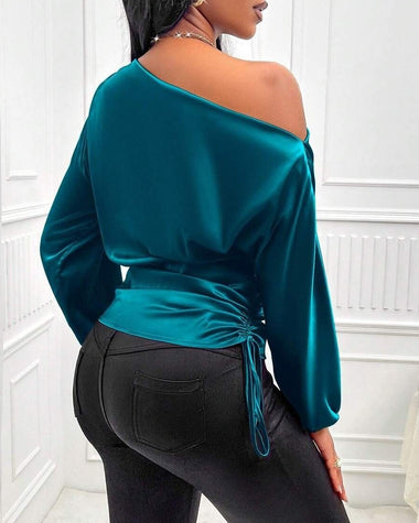 Elegant Satin Drawstring Off The Shoulder Blouse
