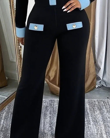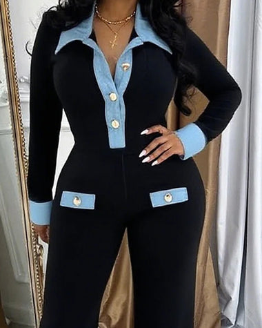 Fashion Denim Patchwork Wide Leg Jumpsuit