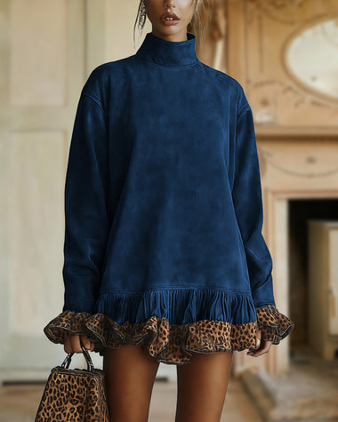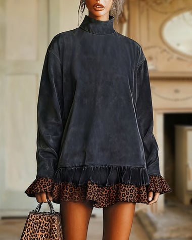 Vintage Leopard Pattern Suede Patchwork Short Dress