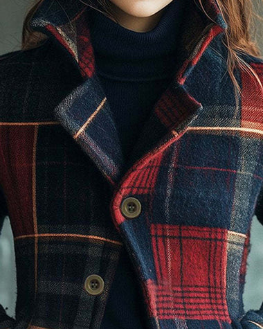 • Features: Traditional tartan check design, oversized collar, 3-button closure, side pockets