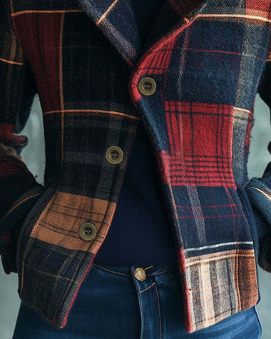 Vintage Plaid Print Tweed Jacket